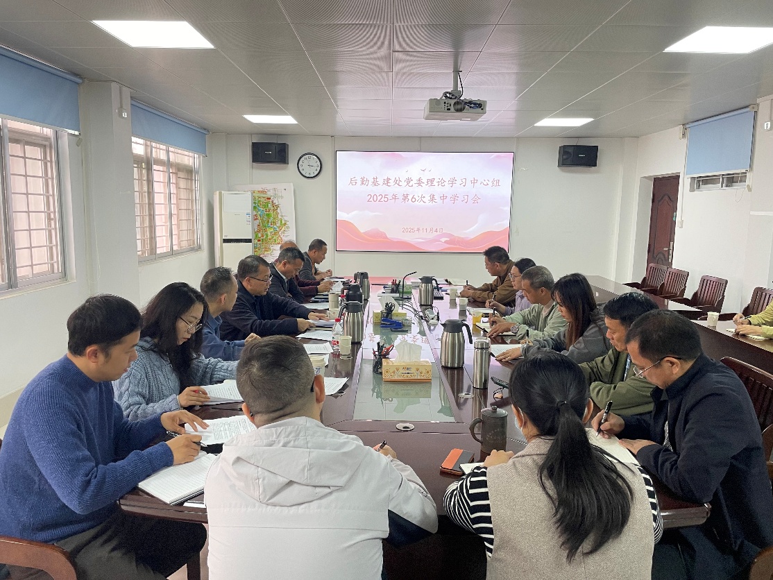 11月4日下午,后勤基建处党委理论学习中心组召开2025年度第6次集中学习会,专题学习习近平总书记在党的二十届四中全会上的重要讲话精神和全会精神,学习《习近平谈治国理政》第五卷,以及《强信心 促发展——理论热点面对面》。会议由处党委书记黄必春主持,处党委理论学习中心组成员参加,自治区纪委监委驻广西大学纪检监察组办公室主任甘武琳列席旁听并点评。
