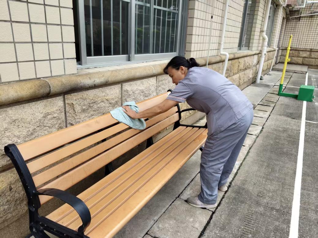为营造学生公寓园区宜学宜居的环境,认真做好园区内消防设备设施、热水机组、洗涤设备等各种设备设施和41间自习室、18个多功能室的保洁维护工作;做好学生公寓园区内547个生活设施(其中公共长椅147张,乒乓球桌117张,晾衣架173个、健身器材110个)的维护工作。