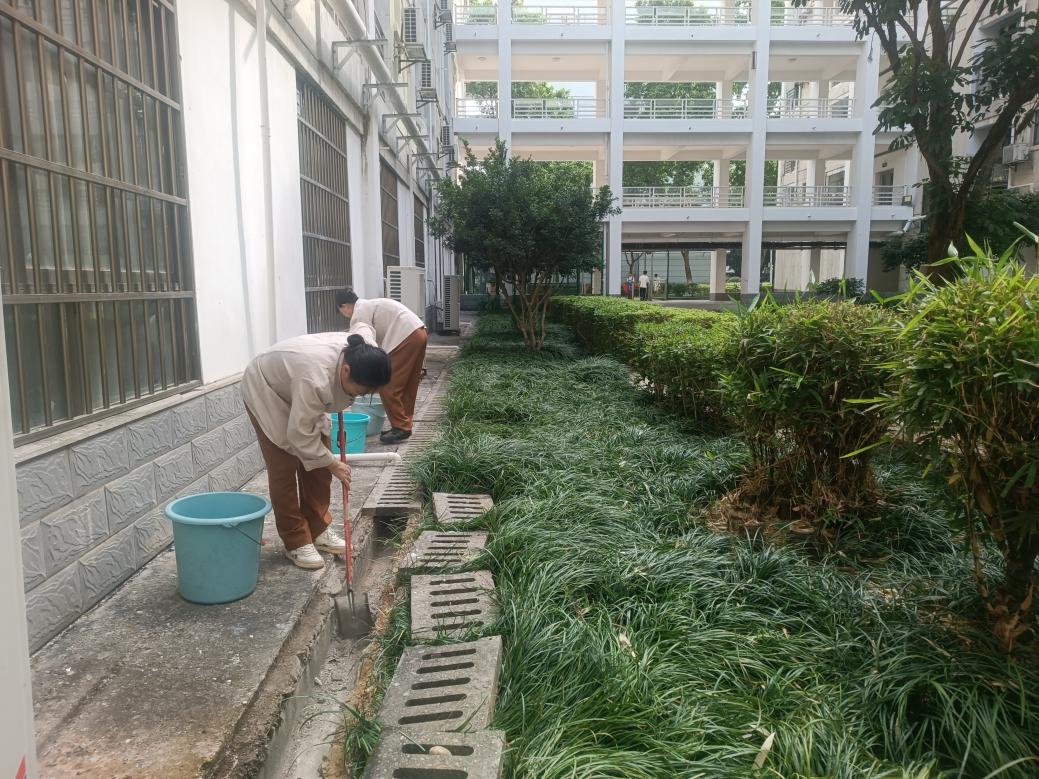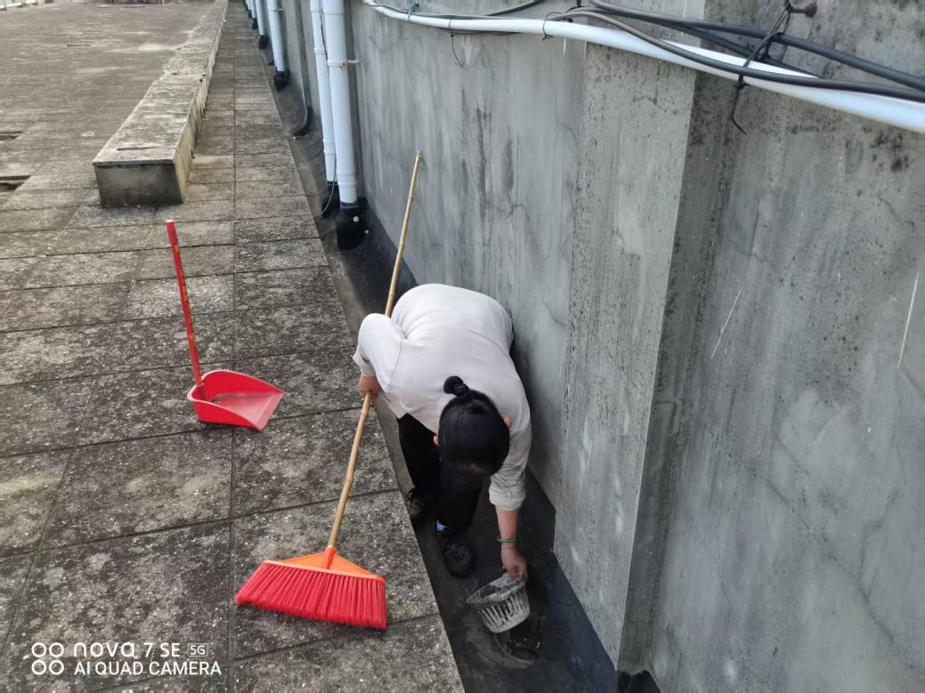 本周对东8-11栋、东13园区、东31栋进行绿化带修剪及除草面积约7141.07平方米;各园区进行日常保洁约19万平方米,本周清理学生公寓86条明沟7次累计长度20846米;清理暗沟64条1次长度2251米。27个楼栋天面排水设施淤泥清理1次。