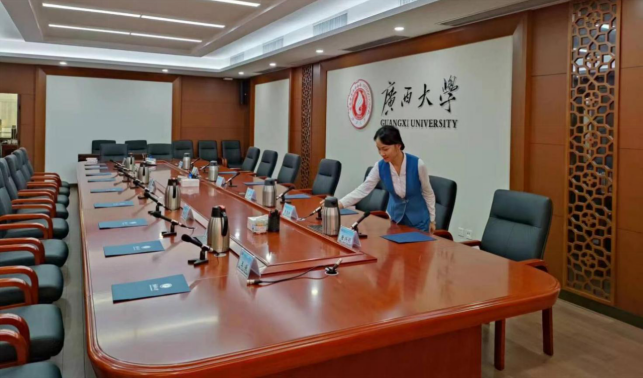 本周做好会场布置、会前、会后保洁及会务各项服务共计39场,其中重要接待17场。