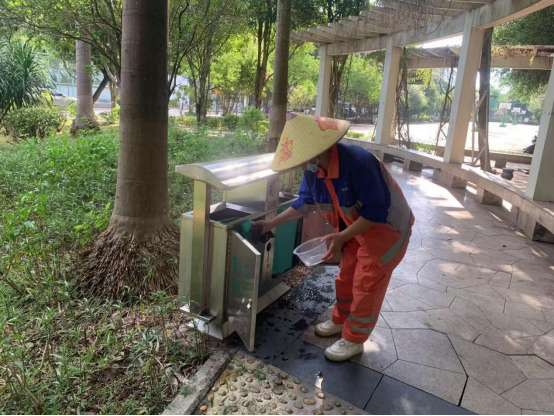 垃圾清运:按规定时间路线清运校园垃圾,做到垃圾日产日清,并对垃圾桶和垃圾箱进行清洗和消杀。本周清运生活垃圾365.3吨,大件垃圾11.5吨,绿化垃圾265立方米。
