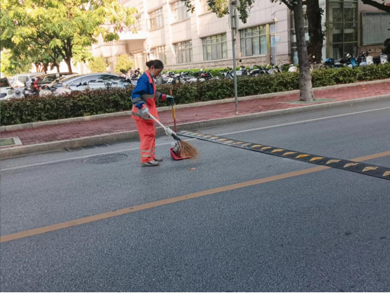 本周环卫保洁人员继续做好校园各区域环境卫生清扫保洁工作,每日清晨五点半开始采用“人机结合”的清扫校园的各大校道及支道,日常及时清理绿地枯枝落叶和白色垃圾,清洗铜像、果皮箱、清理水沟、雨篦子等,保持校内环境干净整洁。环卫保洁总面积近80万㎡,人均保洁6800㎡。