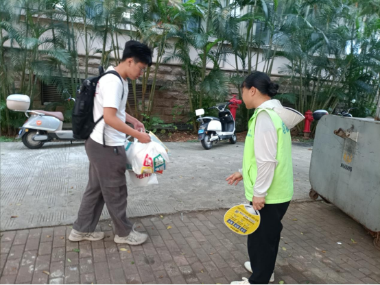 垃圾分类督导:按计划进行垃圾分类督导和宣传、垃圾分类宣传展板清洁和宣传单派发等工作,对校园进行全面巡查,及时处理发现的问题。