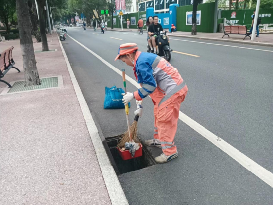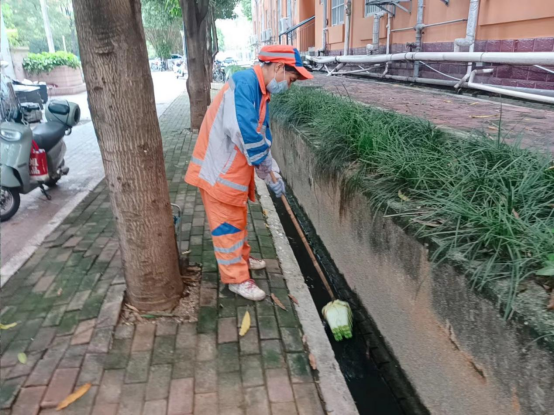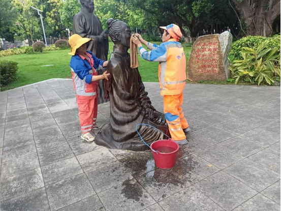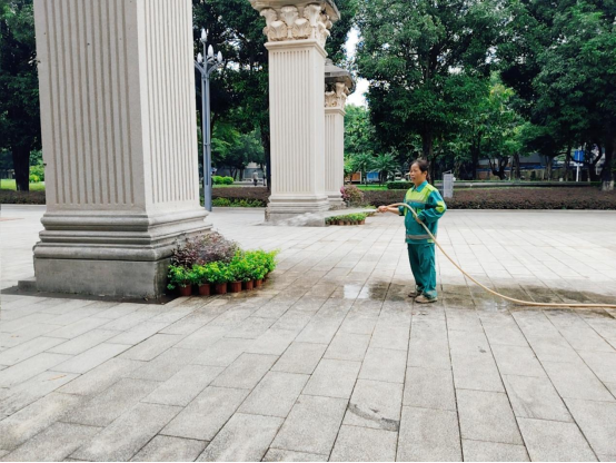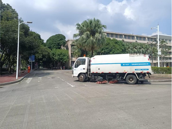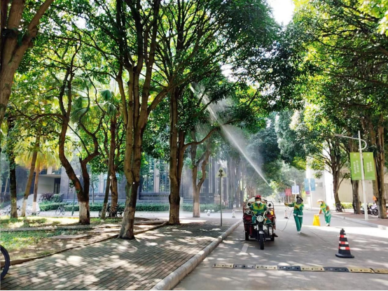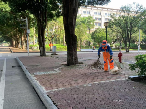 本周环卫保洁人员继续做好校园各区域环境卫生清扫保洁工作,每日清晨五点半开始采用“人机结合”的清扫校园的各大校道及支道,日常及时清理绿地枯枝落叶和白色垃圾,清洗铜像、果皮箱、清理水沟、雨篦子等,保持校内环境干净整洁。环卫保洁总面积近80万㎡,人均保洁6800㎡。