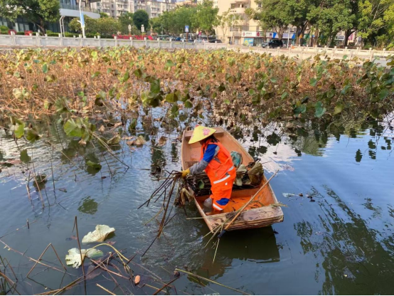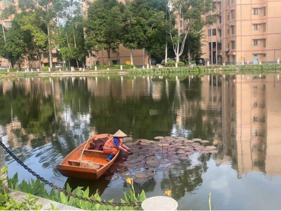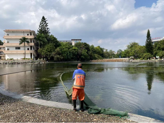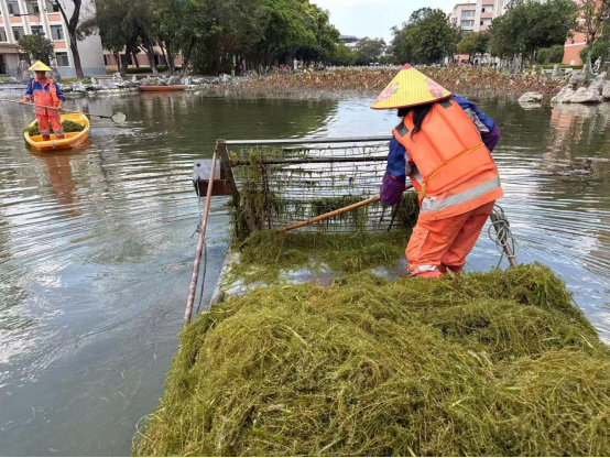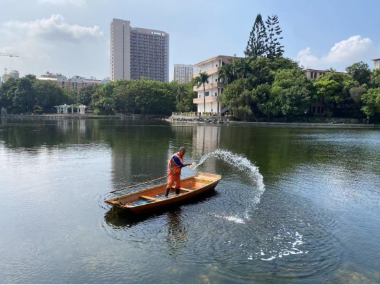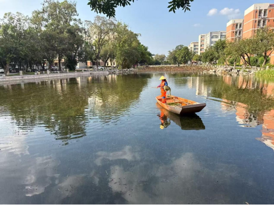 湖泊运维员每日进行湖面保洁、湖面油膜垃圾清理,保持水面干净整洁:对镜湖、鉴湖、翠湖、荷湖、莲湖、爱莲湖、彩蝶湖、大碧云湖、月牙湖、紫荆湖进行花带修剪;对镜湖、鉴湖、翠湖、春花湖、莲湖、爱莲湖、彩蝶湖、大碧云湖、小碧云湖、绿榕湖进行打捞青苔;对体育场西北角假山景观池、汇学堂周边景观池、四教内庭景观池、劝学岛景观池打捞保洁;小碧云湖、荷湖、莲湖枯荷叶修剪;对翠湖、彩蝶湖、鉴湖青苔防控;对大碧云湖、小碧云湖虫类、螺类防控;月牙湖藻类防控;彩蝶湖、莲湖水草修剪。