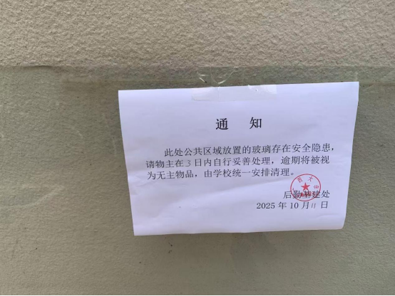 东校园东区11B栋张贴清理乱堆放杂物通知