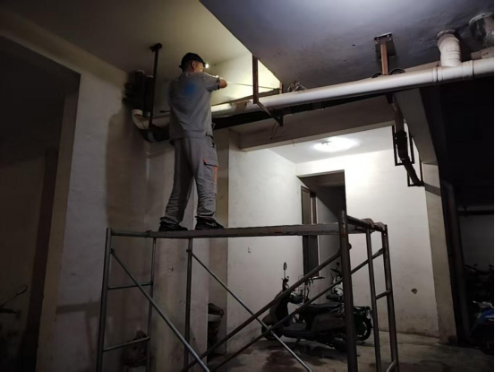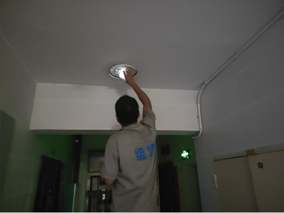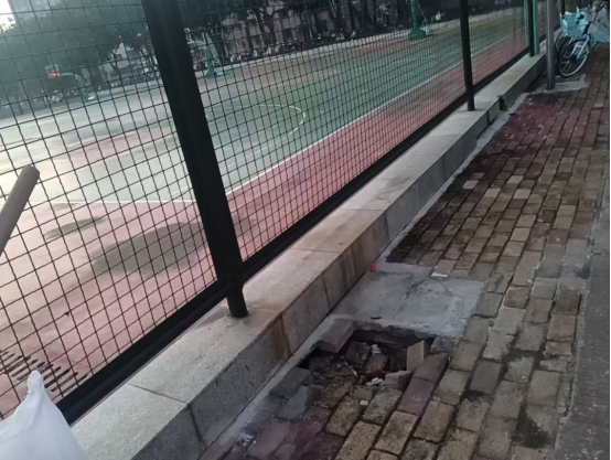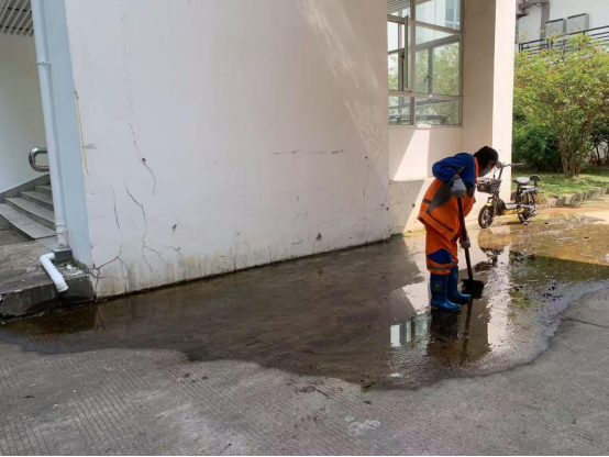 公共区域维修板块继续做好校内公共区域地面、路沿石、路灯、水沟盖板、健身器材等设施排查、维修、抢修工作;及时对校内雨篦子、井盖、管道等排水系统进行排查、疏通。本周对校内公共区域道路路面、路灯、盖板等维修共33处,排水口疏通23次。