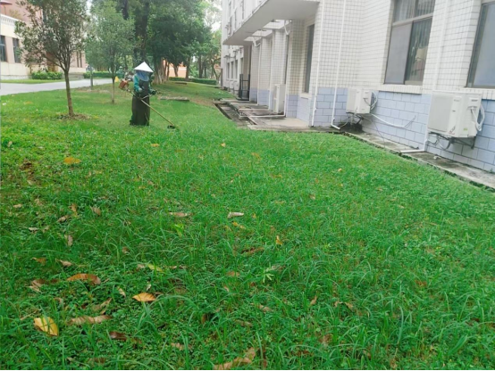 绿地日常养护工作:南大门、轻工学院、汇学堂、熊猫园、办公楼、网络楼、语言中心、物理楼、电气学院、校办、君武馆内庭、四教内庭,西校园中区、西校园北区、新东园、十教、生科院、艺术学院、校医院北面、六教、东校园中区、学生公寓27、28、32栋、北校园教学楼、木工厂路、二幼、东高、东校园西区24栋等区域草坪修剪、绿篱修剪、树木病虫害防治消杀、松土、施肥、淋水、菟丝子清理、落叶清理等养护工作。