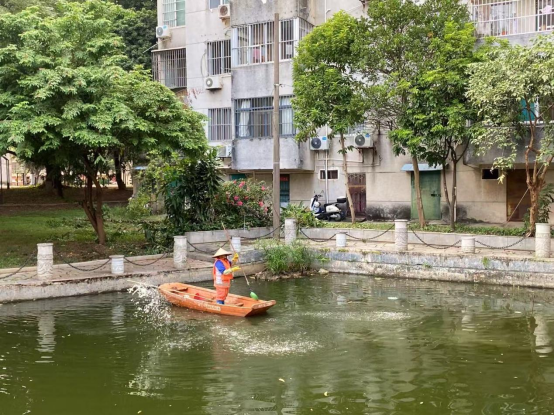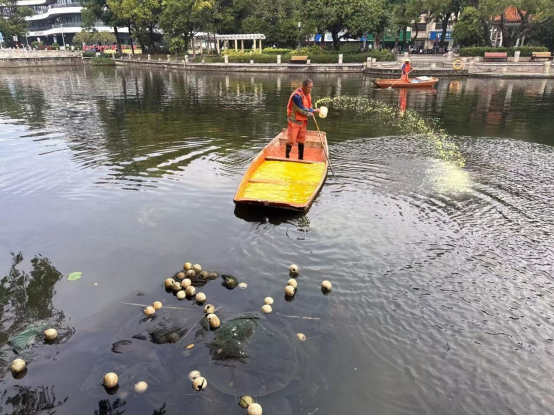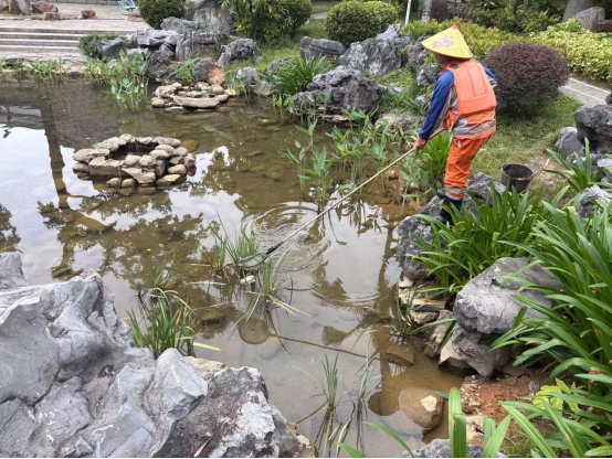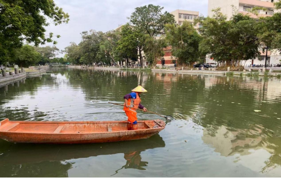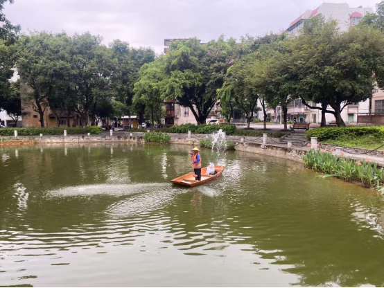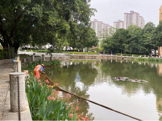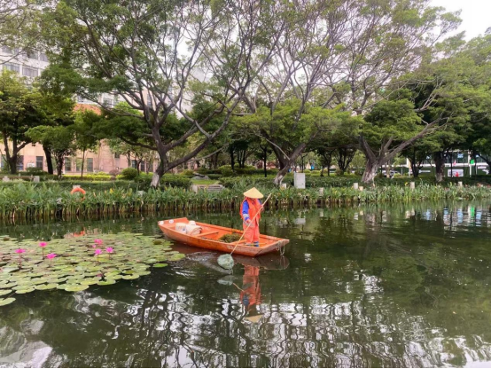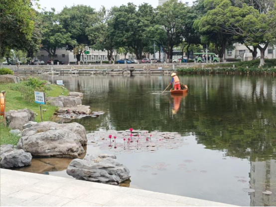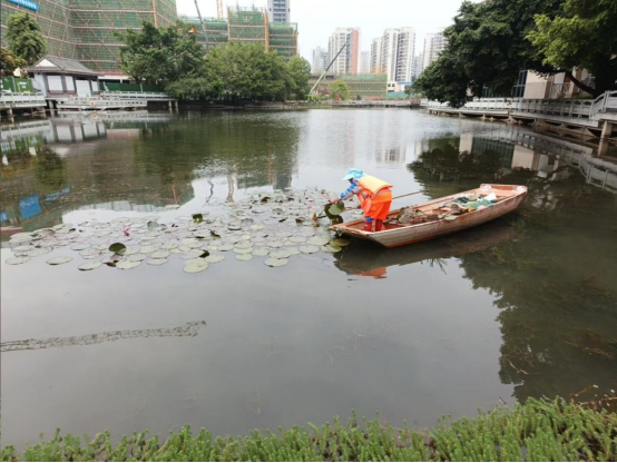 湖泊运维员每日进行湖面保洁、湖面油膜垃圾清理,保持水面干净整洁;对镜湖、鉴湖、翠湖、荷湖、莲湖、爱莲湖、彩蝶湖、大碧云湖、月牙湖、紫荆湖进行花带修剪;对镜湖、鉴湖、翠湖、春花湖、莲湖、爱莲湖、彩蝶湖、大碧云湖、小碧云湖、绿榕湖进行打捞青苔;对西校园假山景观池、汇学堂周边景观池、四教内庭景观池、劝学岛景观池打捞保洁;绿榕湖、观月湖、月牙湖、小碧云湖、大碧云湖枯荷叶修剪;对大碧云湖、小碧云湖、观月湖、月牙湖水质调理。