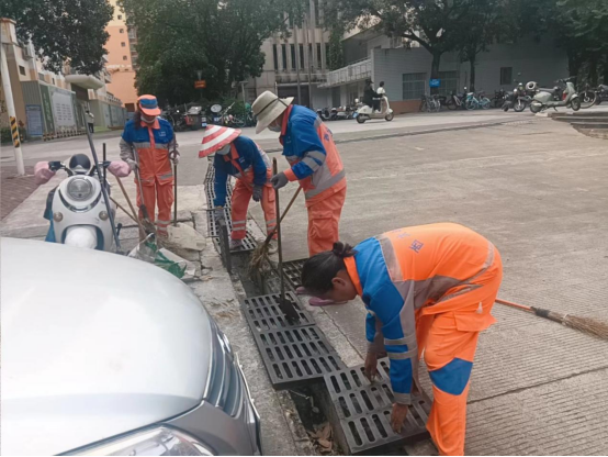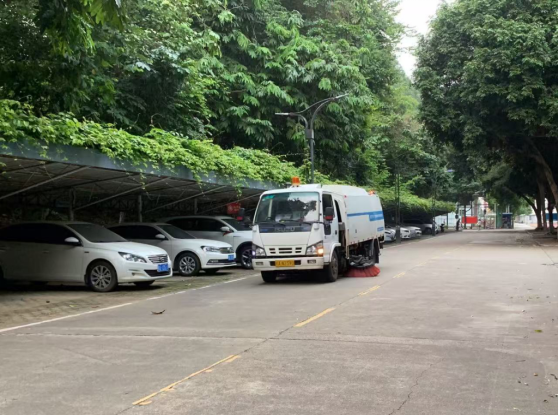 本周环卫保洁人员继续做好校园各区域环境卫生清扫保洁工作,每日清晨五点半开始采用“人机结合”的清扫校园的各大校道及支道,日常及时清理绿地枯枝落叶和白色垃圾,清洗铜像、果皮箱、清理水沟、雨篦子等,保持校内环境干净整洁。环卫保洁总面积近80万㎡,人均保洁6800㎡。