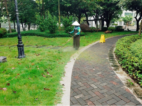 本周环卫保洁人员继续做好校园各区域环境卫生清扫保洁工作,每日清晨五点半开始采用“人机结合”的方式清扫校园的各大校道及支道,日常及时清理绿地枯枝落叶和白色垃圾,清洗铜像、果皮箱,清理水沟、雨篦子等,保持校内环境干净整洁。环卫保洁总面积近80万㎡,人均保洁6800㎡。