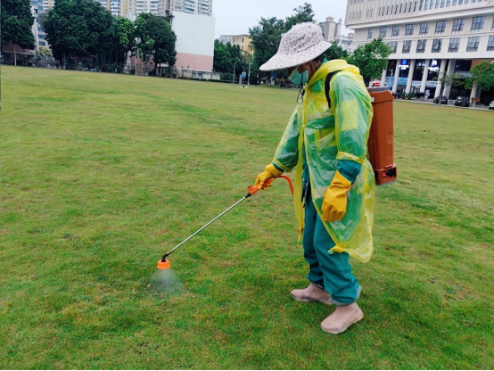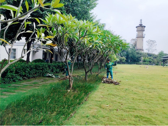 绿地日常养护工作:大礼堂、外国语学院、保卫处、校办、西学生公寓外围、莲湖、荷湖、汇学堂、育才广场、分析测算中心、网络楼、新闻楼、语言中心、计算机学院、四教内庭、西校园中区、西校园北区、时光广场、图书馆、新东园、农学院、六教、东校园中区1~18栋、北校园、东门、碧云湖、月牙湖等区域草坪修剪、绿篱修剪、病虫害防治消杀、松土、施肥、淋水、菟丝子清理、落叶清理等养护工作。