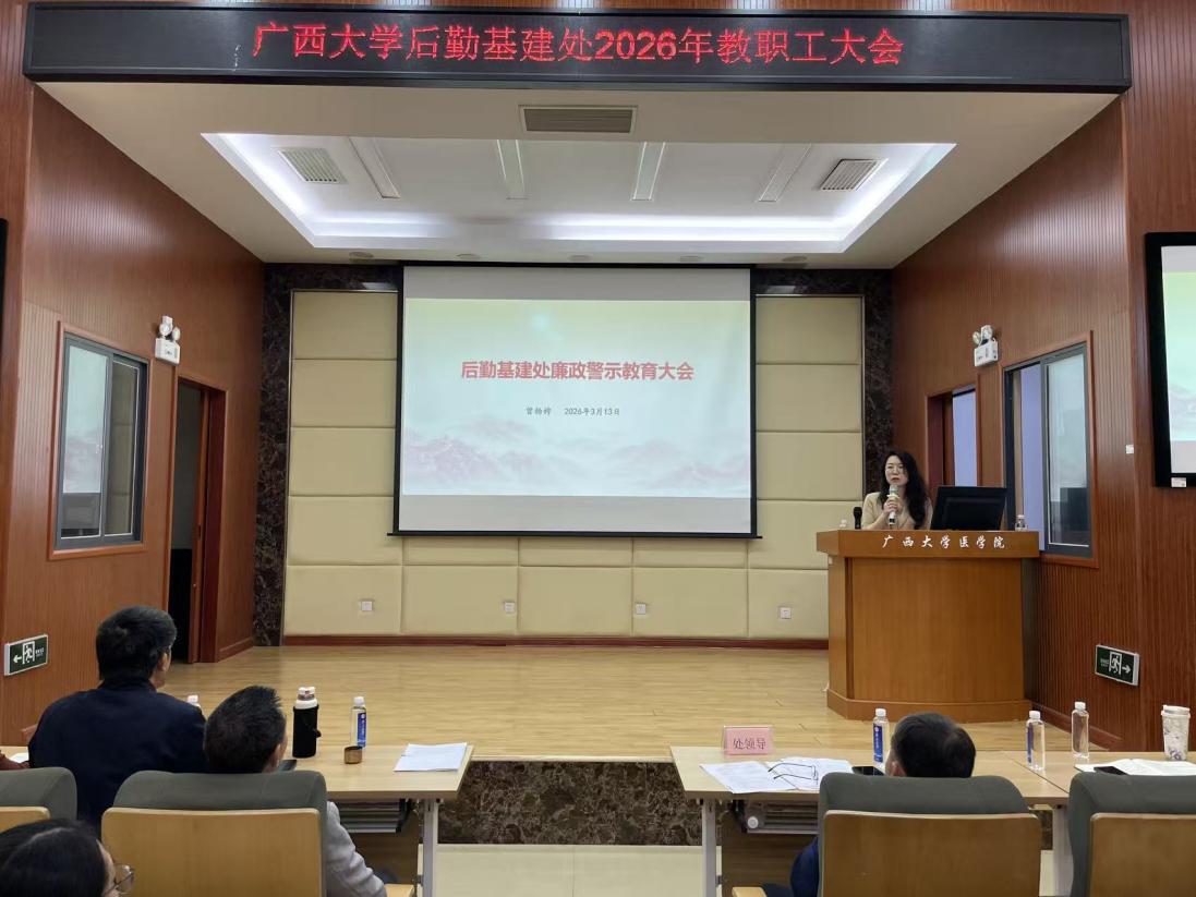 为强化廉洁自律意识,会议同步开展廉政警示教育。处党委副书记、纪委书记曾杨娉作专题警示讲话,要求全体职工保持政治清醒、树牢敬畏之心,践行正确政绩观,以清廉作风推动后勤基建工作高质量履职,同时深刻剖析岗位廉政风险,明确廉洁从业具体规范。期间,全体职工集中观看了典型案例警示片和廉政教育片,以真实案例敲响廉洁警钟,引导职工知敬畏、存戒惧、守底线,筑牢拒腐防变思想堤坝。
