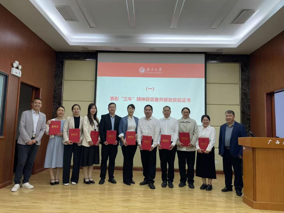 会议对践行中国共产党人精神谱系“三牛”精神表现突出的9名先进代表予以表彰。处党委书记黄必春、处长吴贤礼为获奖职工颁发荣誉证书,充分肯定他们过去一年里立足岗位、默默奉献、攻坚克难的优良作风,勉励全体职工以先进为榜样,传承弘扬“三牛”精神,立足本职、奋勇争先。